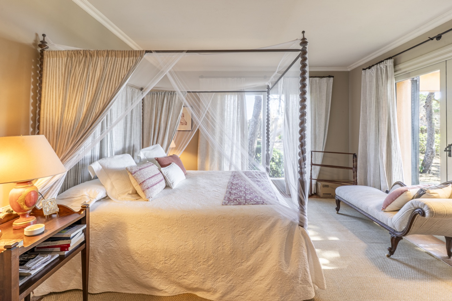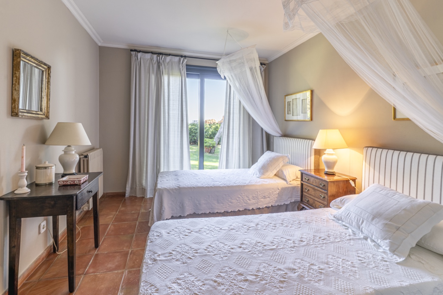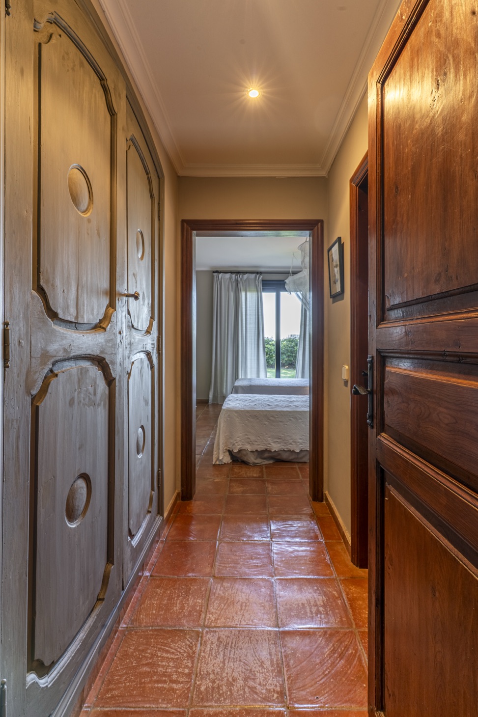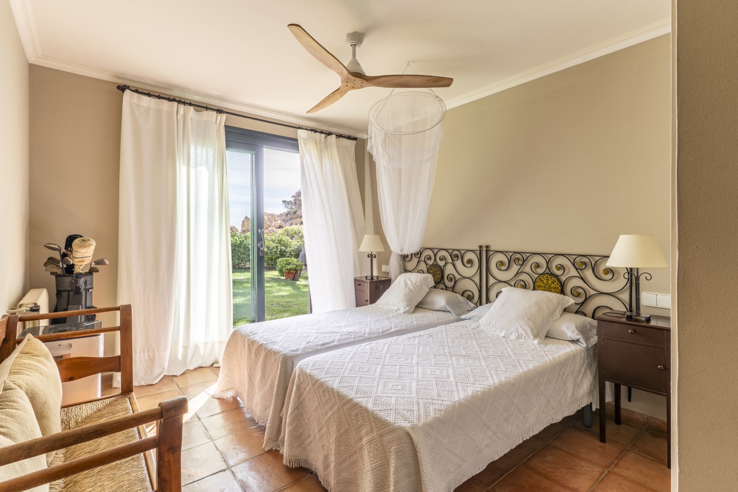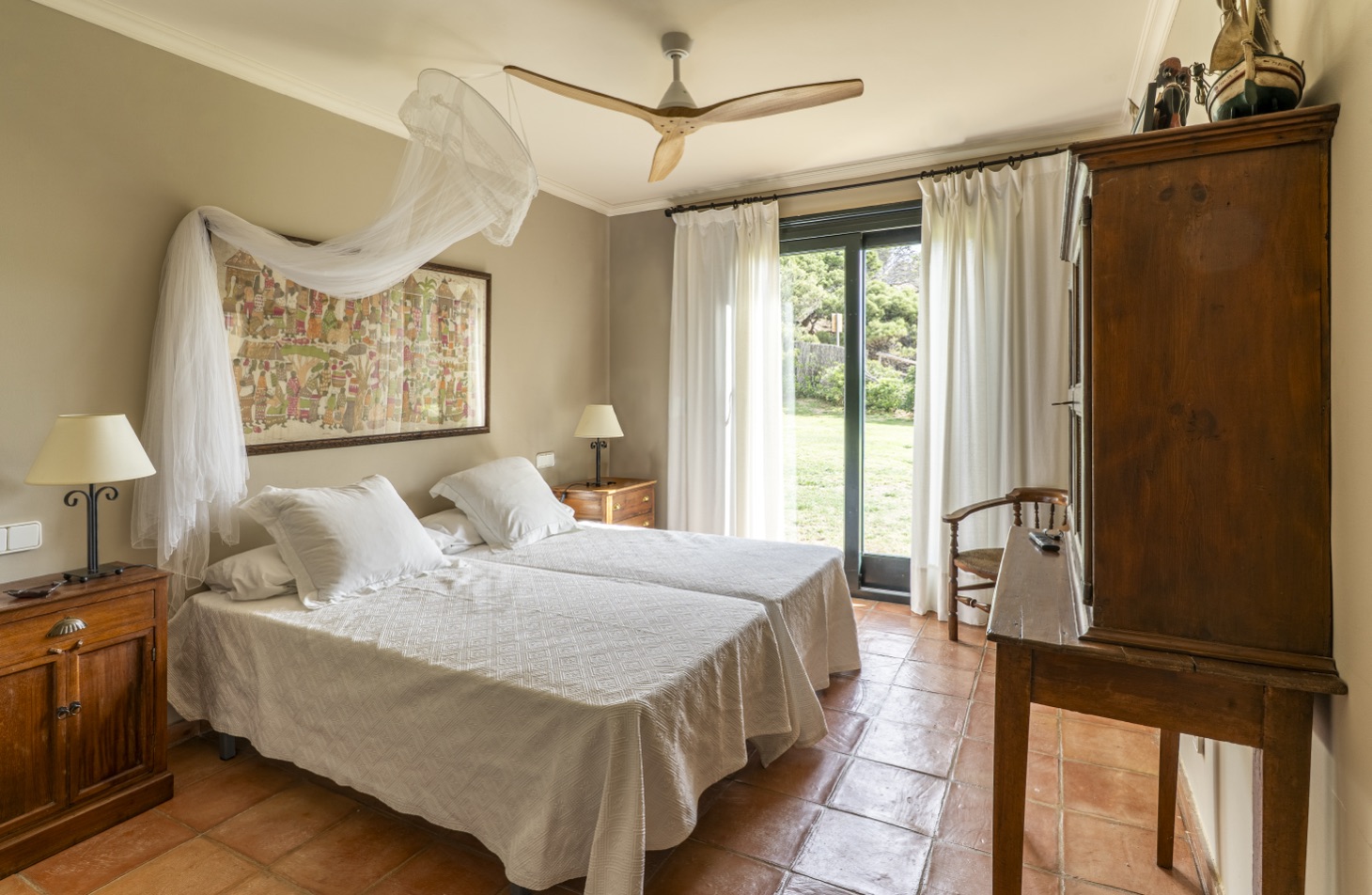 The sleeping area consists of five bedrooms, all exterior, with private bathrooms and equipped with ceiling fans to ensure a pleasant temperature during the warmer months, arranged as follows: